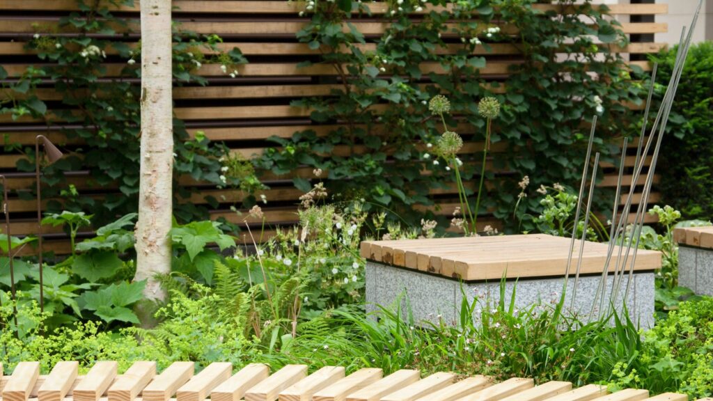 - Climbing plants: Vines on trellises attached to a wooden or vinyl screen soften harsh lines while introducing greenery.